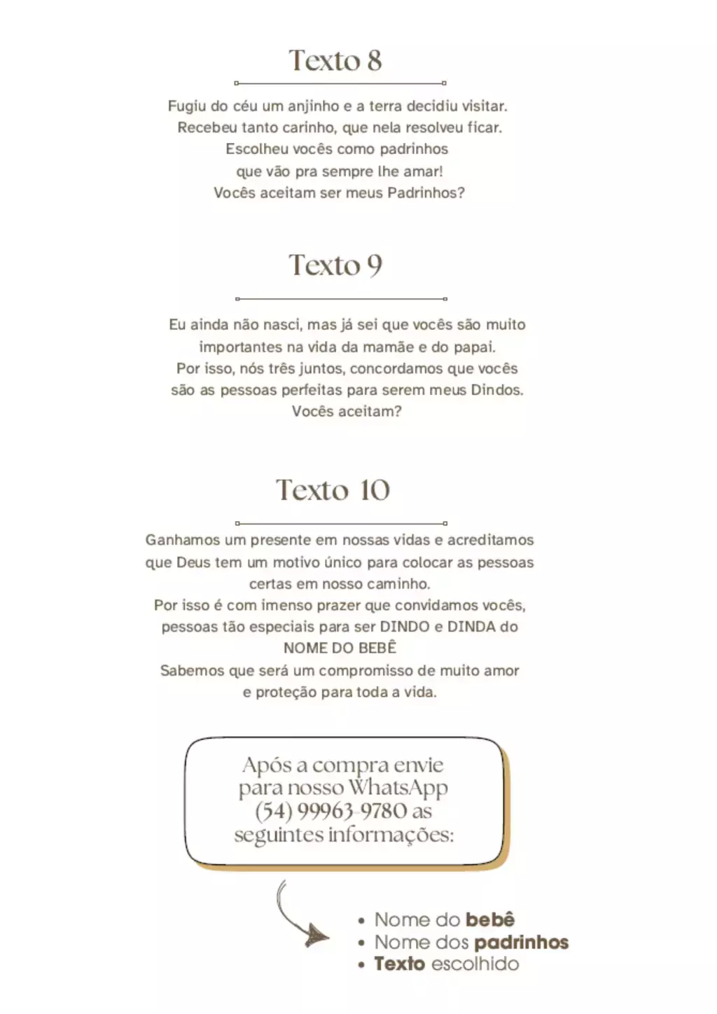 Após a compra, envie seu texto e nomes para personalização via WhatsApp (54) 99963-9780. Surpreenda com um convite que vai muito além do comum – um presente cheio de significado e charme!