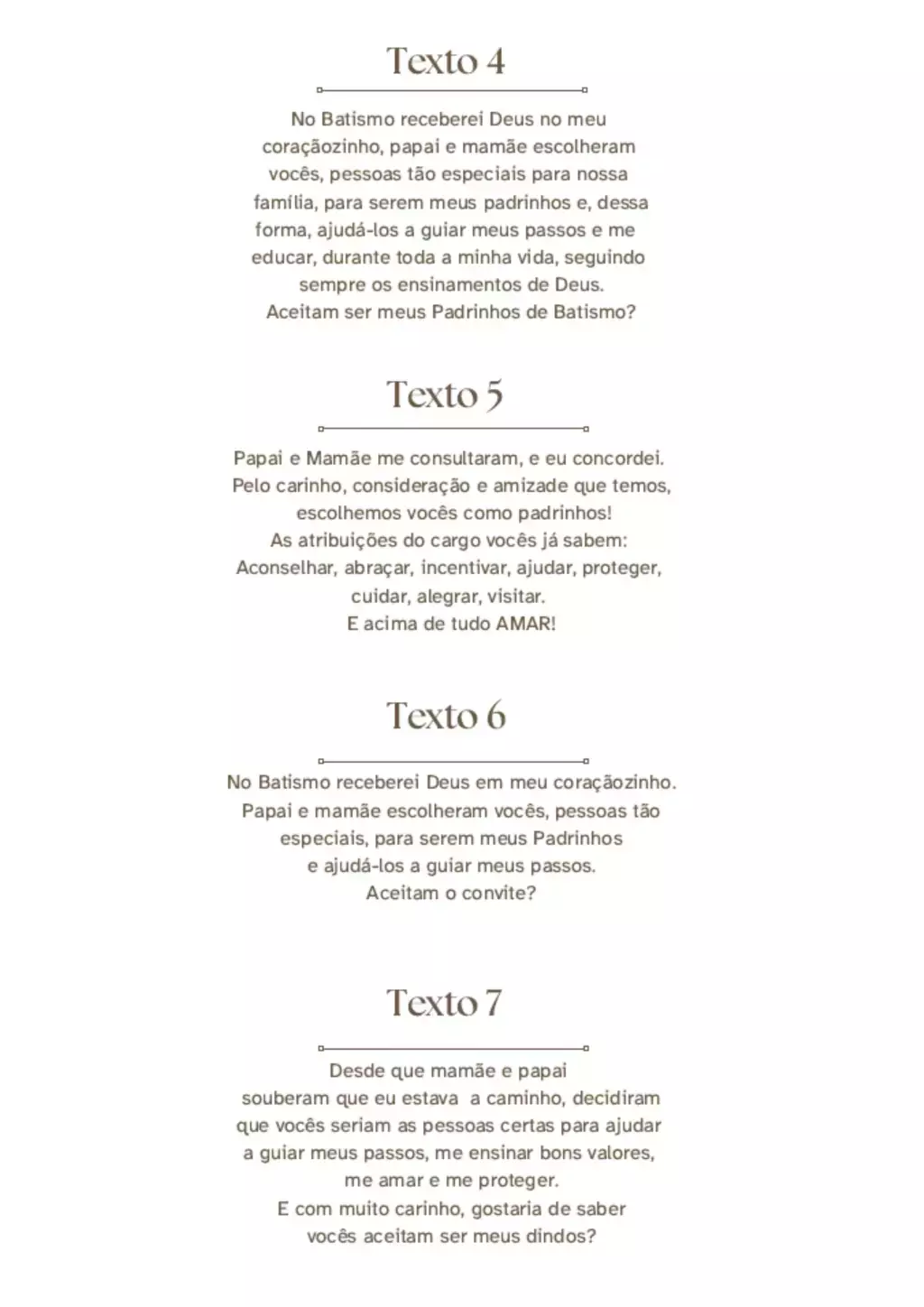 Após a compra nossa equipe entrará em contato pelo Whatsapp +55 54 99963-9780 para solicitar os nomes dos padrinhos e do bebê.
